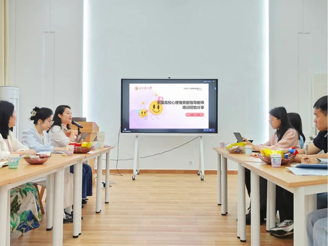 肖璟围绕 “心理情景剧的界定、创作与评价” 展开经验分享。她提出,优秀心理情景剧需具备主题聚焦、情节真实、引发共鸣三大特征,能精准呈现学生常见心理困惑。在表演实践方面,重点强调角色塑造、舞台呈现、情绪传递三要素,指出演员要通过细腻的肢体语言与台词表达刻画人物心理,配合灯光音效等舞台设计增强表现力,同时把控情绪节奏,生动展现矛盾解决过程。肖璟结合优秀剧目解析剧本创作的核心要素与实践技巧,为辅导员指导学生编创心理情景剧提供了理论指导与实操指南。