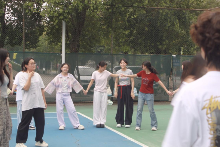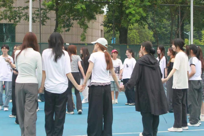 围圈拉手,听指令说相同的话、做相反的动作 —— 练反应、抗压力,思维惯性被打破,团队默契悄悄升级!